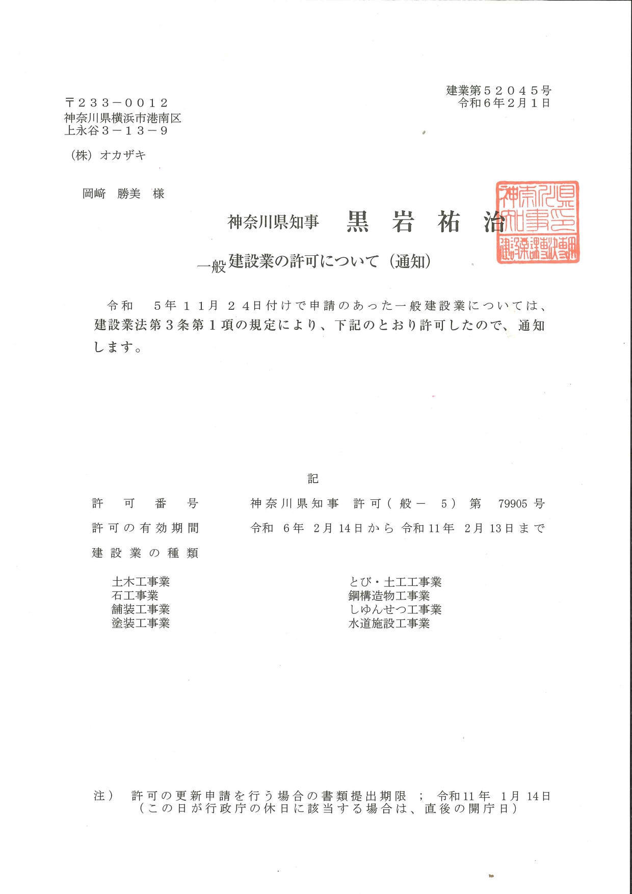 | 起業 | 平成14年11月15日 岡﨑建設 |